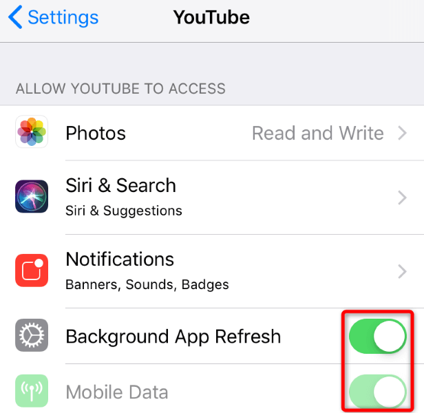 - BekapcsolA háttér alkalmazás frissítésevalamintMobil adatokOpciók.