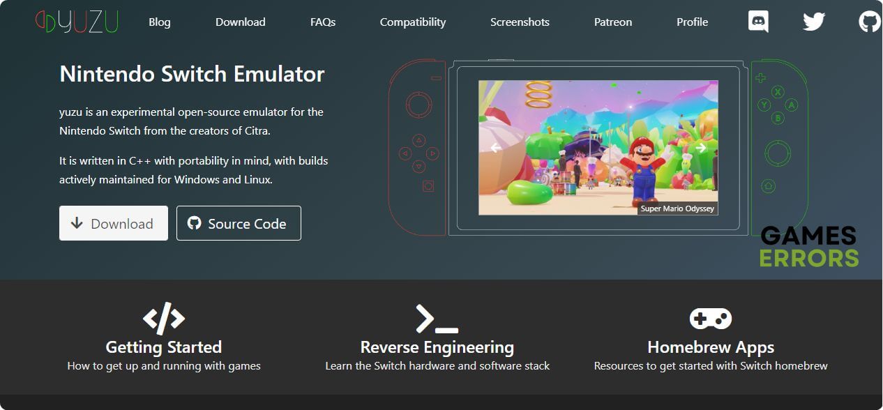 - Látogasson el a használt emulátor hivatalos weboldalára. Például,Yuzu weboldala-