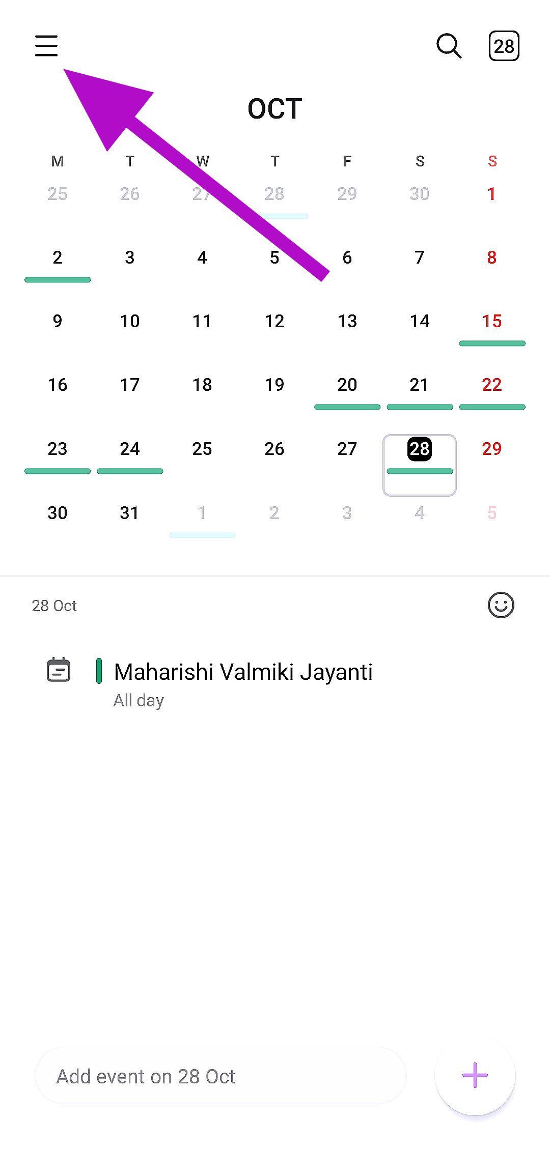 Ha a Samsung naptár alkalmazáshoz kapcsolódik a Google -fiókjához kapcsolódó személyes naptár hozzáadásához, egyszerűen érintse meg a Hamburger menüt, bővítse a Google -fiókot, és válassza ki a személyes naptárt.