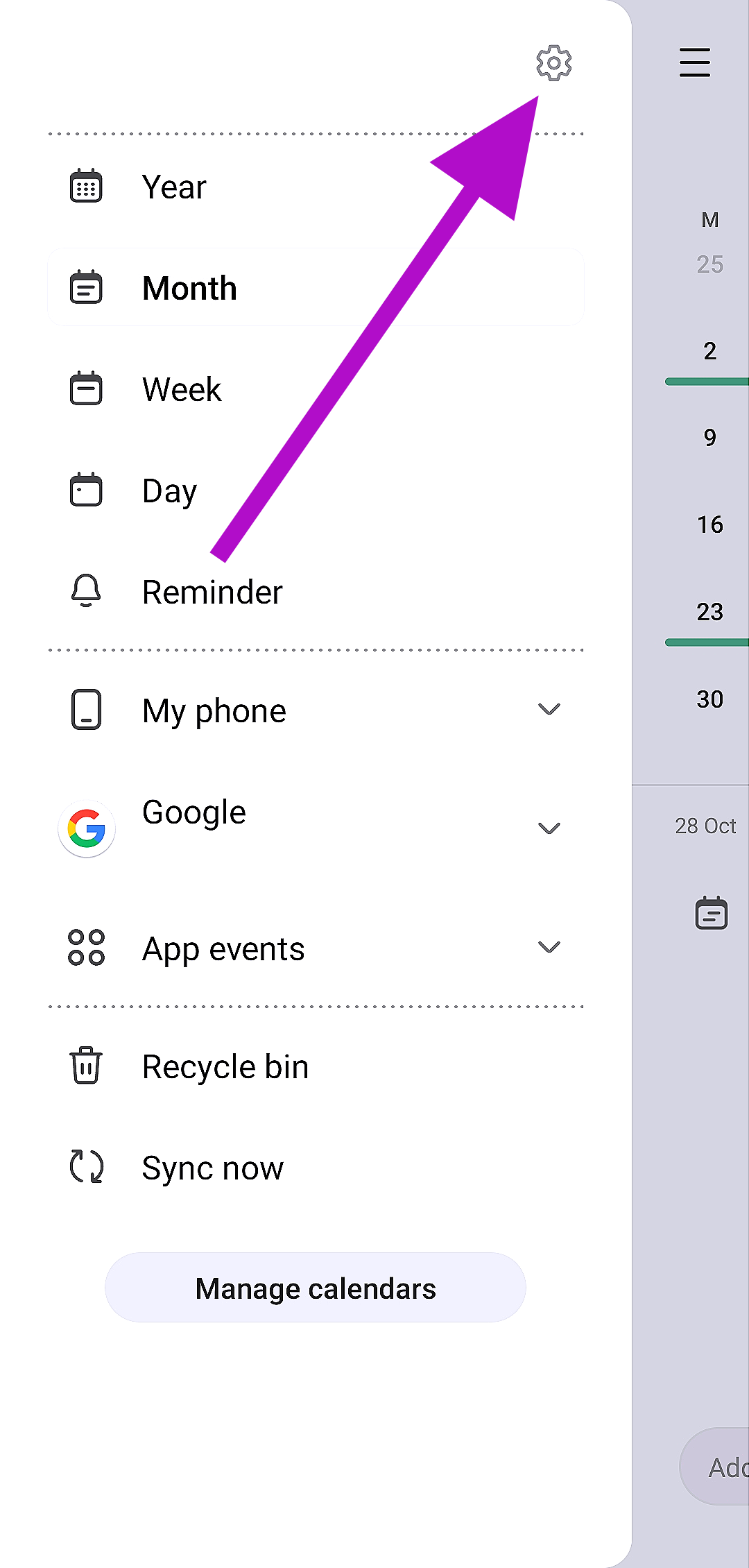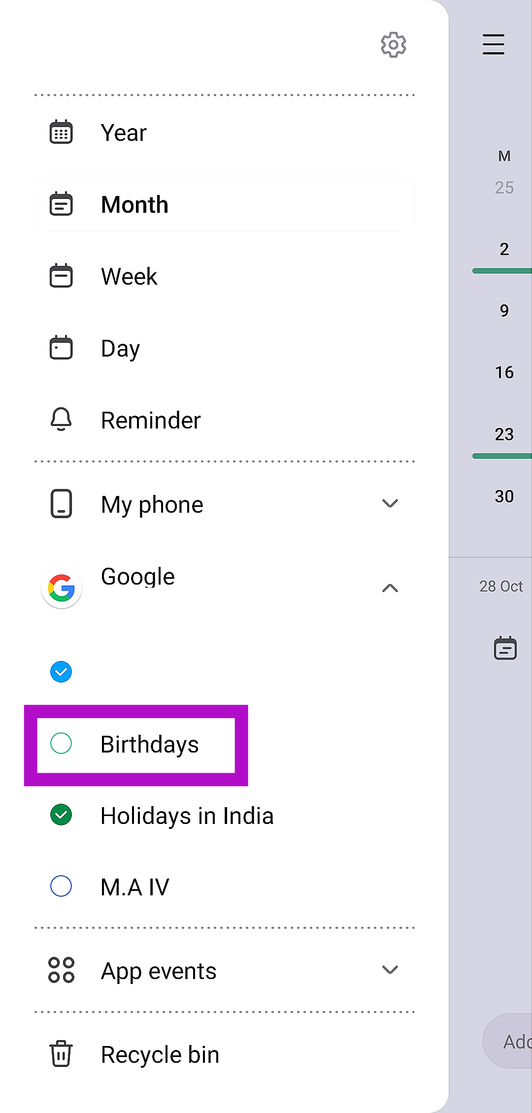 Győződjön meg arról, hogy a kívánt naptár engedélyezve van -e a Samsung alkalmazásban