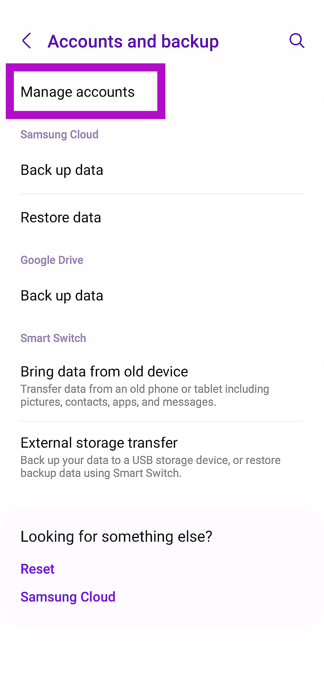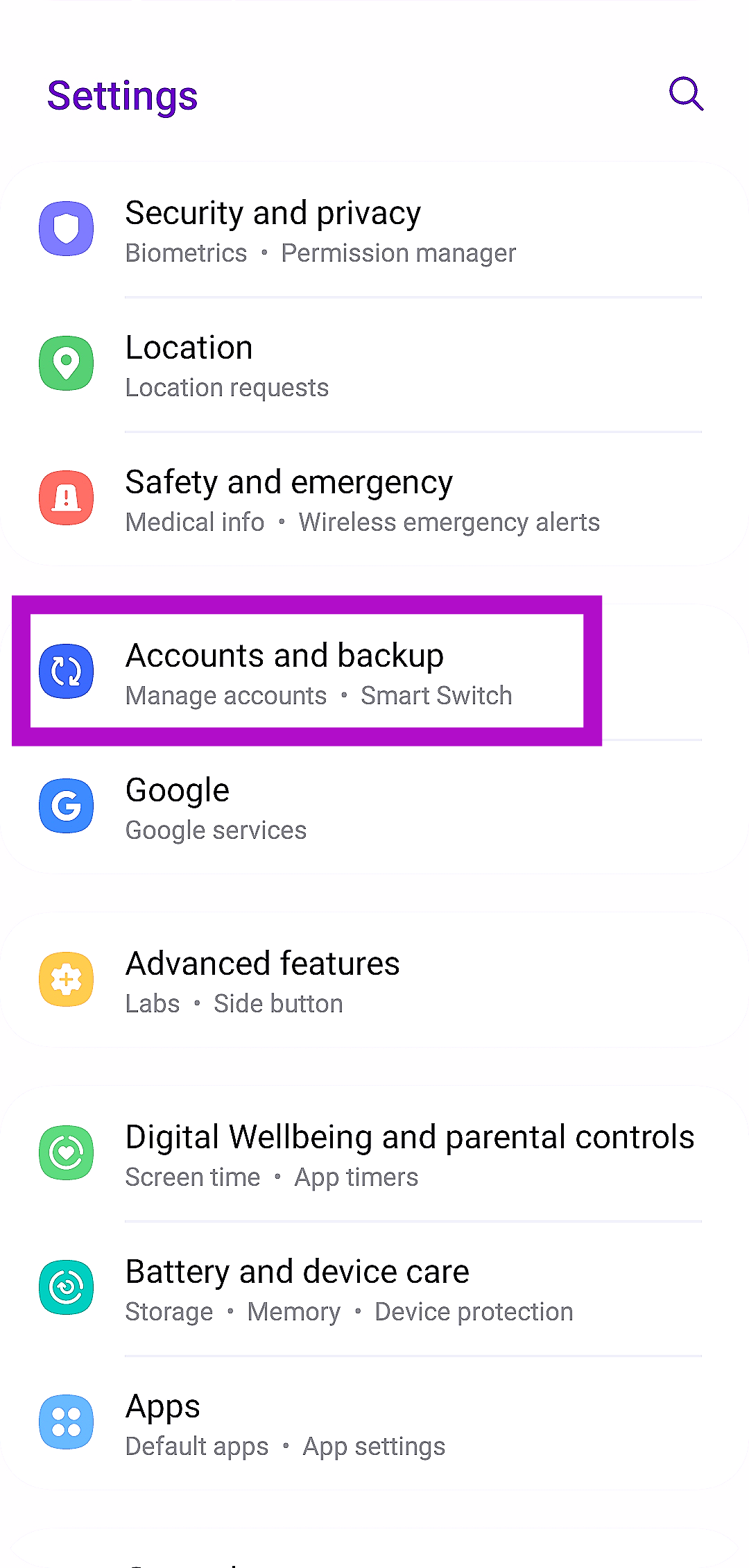 1. lépés:ElindulBeállításokés válasszonFiókok és biztonsági mentés-