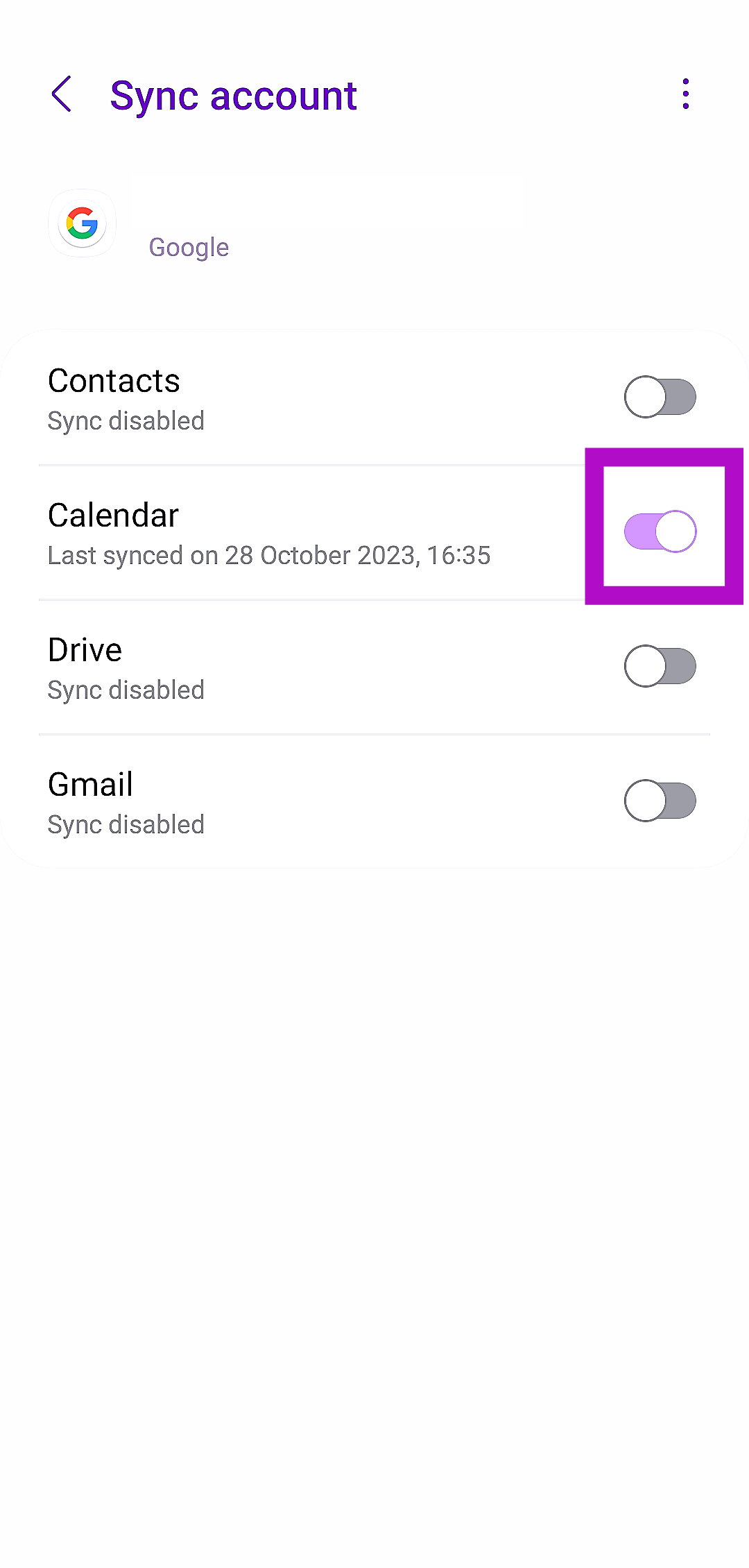 Győződjön meg arról, hogy a szinkronizálás engedélyezve van -e a Google Naptárhoz
