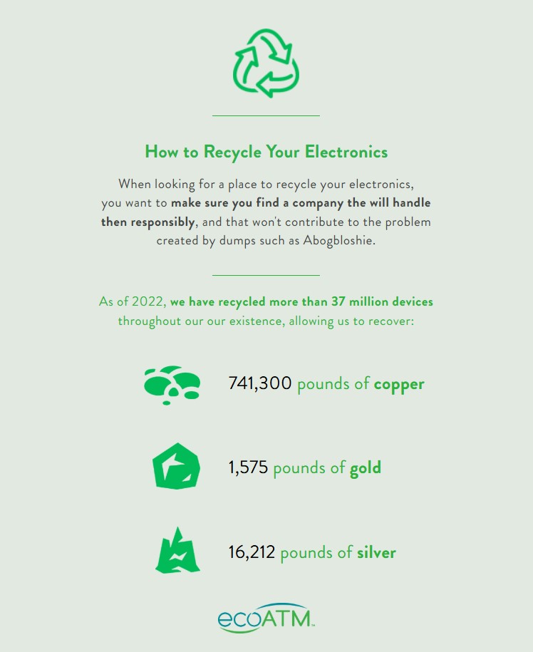 Vaikka jokainen Abogbloshie -laitteisto ei tule Yhdysvaltojen tai EU: n kaltaisesta maasta tai EU: sta, jos länsimaiden ihmiset vähentävät vanhojen laitteidensa heittämistä ja löytäneet sen sijaan tavan käyttää niitä uudelleen tai kierrättää niitä, se voisi tehdä suuren muutoksen ihmisten terveydelle ympäri maailmaa.