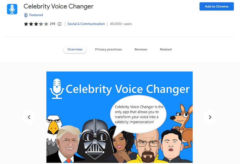 Ainoa ohjelmisto, joka käyttää syvän oppimisen tekniikkaa äänen muuttamiseksi kuuluisuuteen. Sitä saa ääni AI ja se on yhteensopiva sekä iOS- että Android -puhelimien kanssa. Tämän sovelluksen avulla voit muuttaa heti äänisävyn muiden kuuluisuuksien ääneen ilman, että sinulla on muita monimutkaisia ääniohäittimiä.