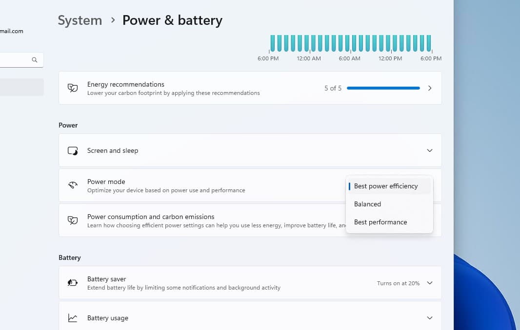 Windows 11 esitteli erilaisia tehotiloja ja valitse paras tehotehokkuus. Käytä vähemmän energiaa ja saat eniten kannettavan tietokoneen akkua.