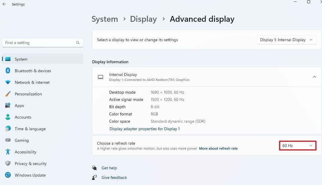 Päivitysnopeus on, kuinka usein näytön kuva muuttuu joka sekunti. Korkeamman päivityksen avulla koet tasaisemman ja paremman katselukokemuksen. Mutta haittapuoli on korkean akun kulutusta. Ja virkistysnopeuden vähentäminen voi olla jotain, joka voi auttaa pidentämään kannettavan akkua Windows 11: ssä.