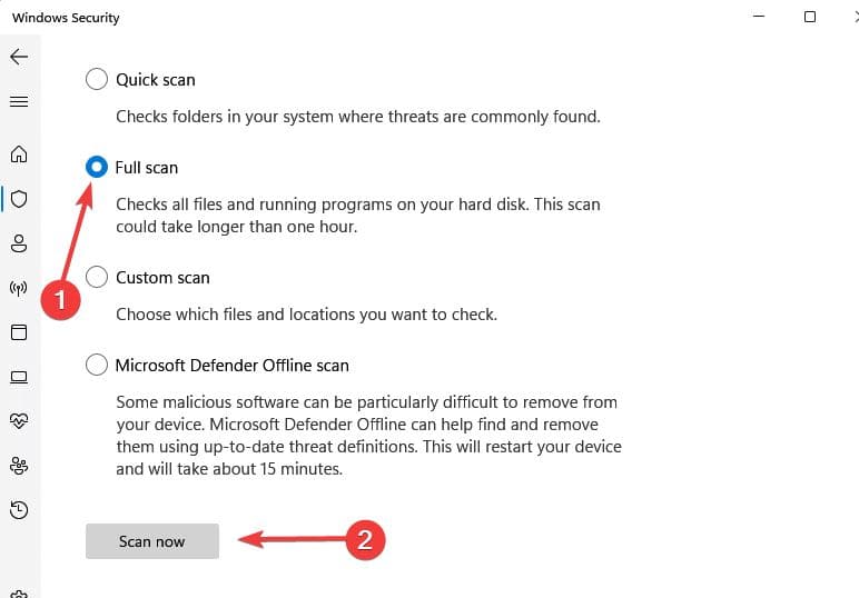 - Suorita viruskannaus käyttämällä sisäänrakennettua Windows-tietoturvasovellusta tai valitsemasi kolmannen osapuolen virustentorjuntaohjelmaa.