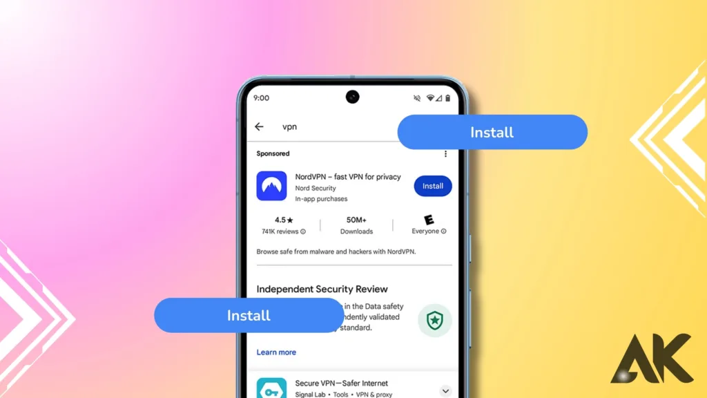 - Lataa ja asenna: Napauta VPN -sovellusta ja napauta ”asenna” -painiketta ladataksesi sen.