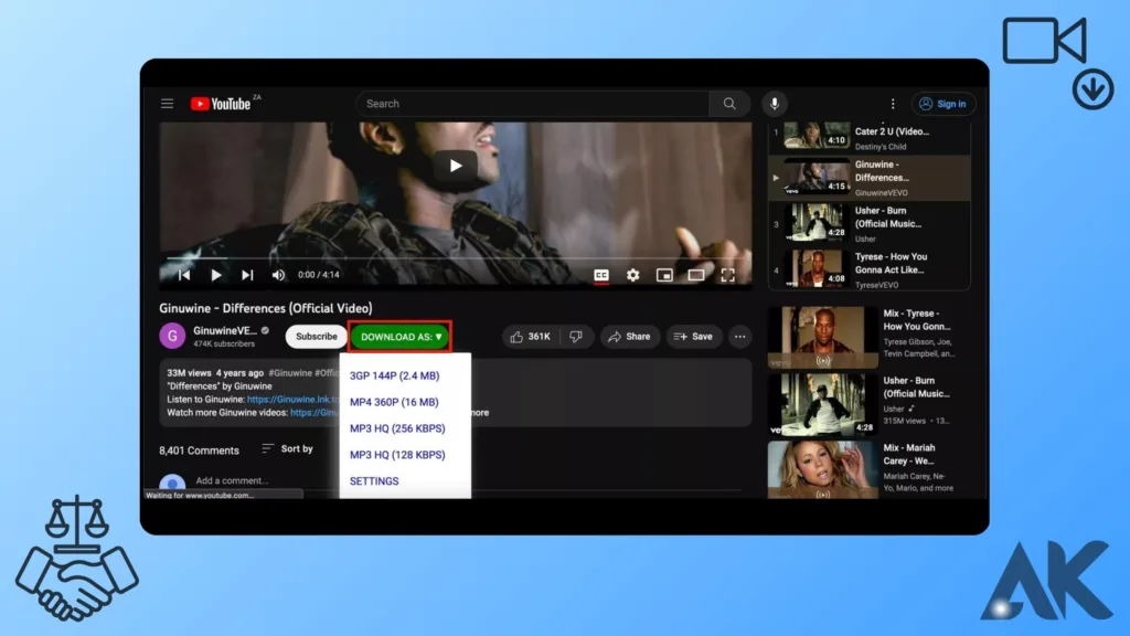 YouTube-videoiden latausohjelmia käyttävät ihmiset ovat hyvin hämmentyneitä ja kiistelevät paljon siitä, onko YouTube-videoiden lataaminen sallittua vai ei. YouTuben käyttöehdot tekevät selväksi, että elokuvien lataaminen ilman omistajan lupaa ei ole sallittua, mutta joitain harmaita alueita ja poikkeuksia on harkittava. Yleensä tekijänoikeudella suojatun sisällön lataaminen ilman lupaa voi joutua vaikeuksiin lain kanssa, koska se rikkoo sisällöntuottajien oikeuksia ja YouTuben sääntöjä.