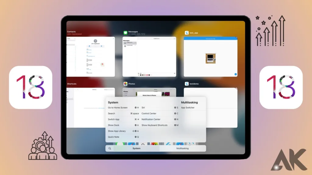 Ipados 18: n uusien monitehtävien ominaisuuksien avulla käyttäjillä on nyt pääsy joukkoon uusia toimia, joiden tarkoituksena on helpottaa iPadin sovellusten vaihtamista. Nämä luonnolliset toimet muuttavat sitä, kuinka ihmiset vaihtavat sovellusten välillä ja järjestävät työnsä. Uudet monitehtävän ominaisuudet iPados 18: ssa lisää viileitä liikkeitä, kuten puristaminen sisäänpäin kolmella sormella, jotta voit palata takaisin aloitusnäyttöön ja pyyhkäisemällä neljä sormea avataksesi sovelluskytkimen.