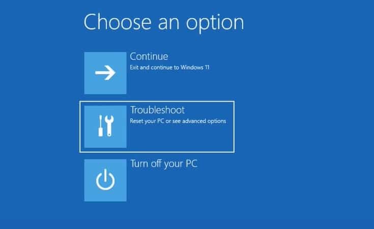 Vaihtoehtoisesti voit pakottaa käynnistämään tietokoneen uudelleen kolme kertaa: pidä virtapainiketta painettuna, kunnes se sammuu, ja käynnistä se sitten uudelleen. Kolmannella yrityksellä Windows siirtyy palautustilaan. Tässä Microsoftin virallisessa artikkelissa ehdotetaan erilaisia tapojapääsy Windowsin palautusympäristöön Windows PC:ssä.