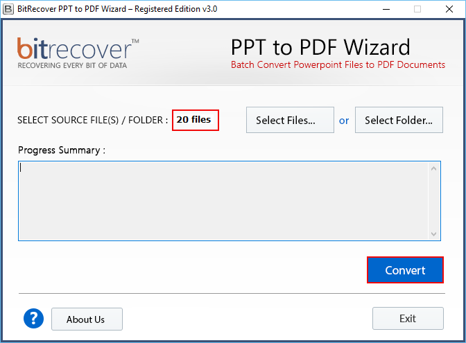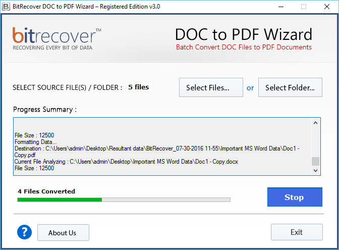 - Käyttäjät voivat saada lähtötietoja kuvamuodossa, PPT, XLS, DOC jne.BitRecoversisältää ohjelmiston, joka auttaa käyttäjiä muuttamaan nämä tiedostot PDF-muotoon.