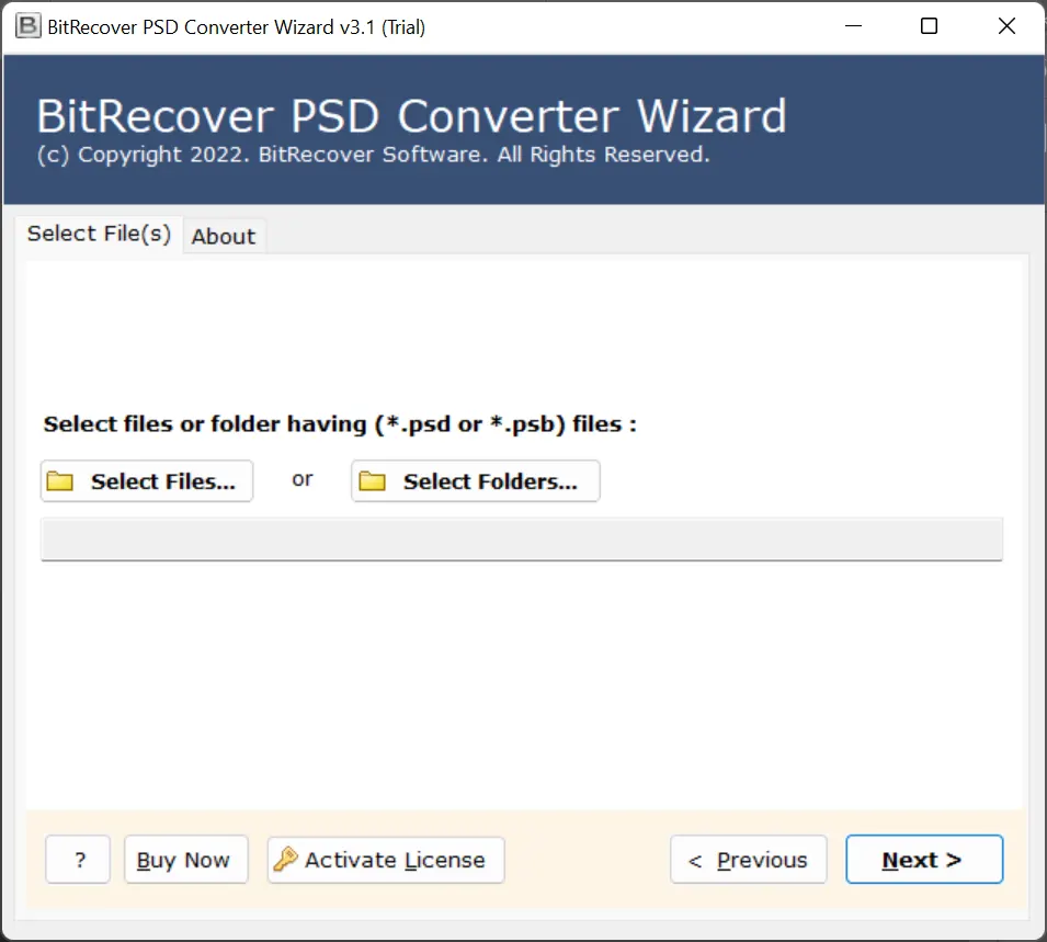 - JuoksuaPhotoshop HTML -muuntimeenWindows -koneellasi. ValitaValitse tiedostot / valitse kansiotPainike PSD -tiedostojen lähettämiseen ohjelmistoon.