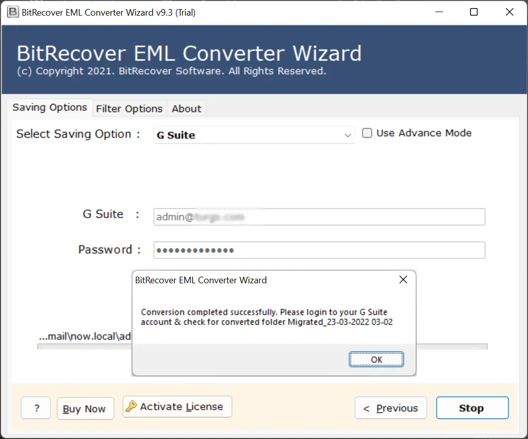- Muuntaminen suoritettu onnistuneesti ja katsoPopup -viesti valmistumisesta.