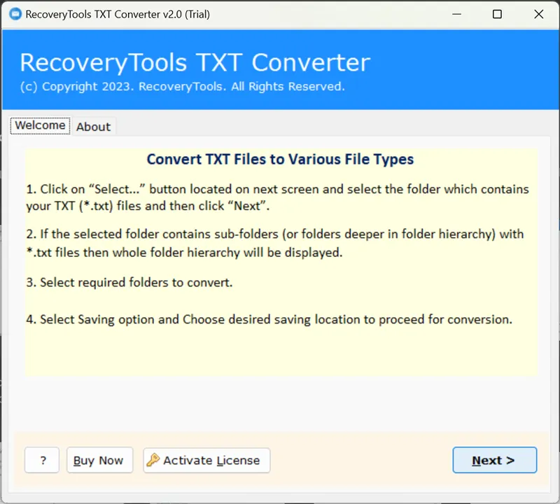 - Lataa ja suoritaTXT PST -muuntimeenSovellus Windows -tietokoneellasi.