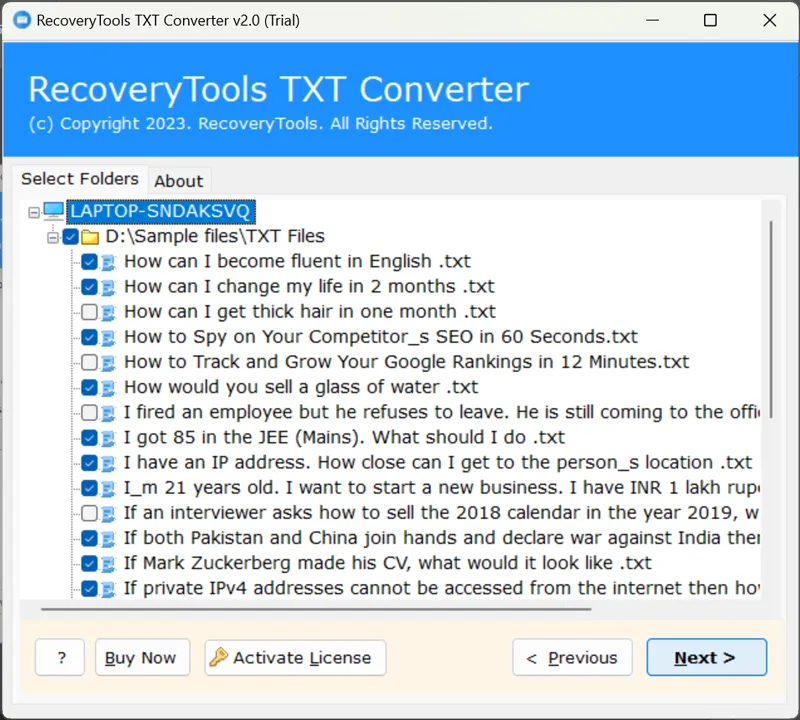 - Lastauksen jälkeenTxtTietotiedosto sovelluspaneeliin työkalu näyttää valitsemasi tiedostojen / kansioiden määrän, kuten alla olevasta kuvakaappauksesta näet.