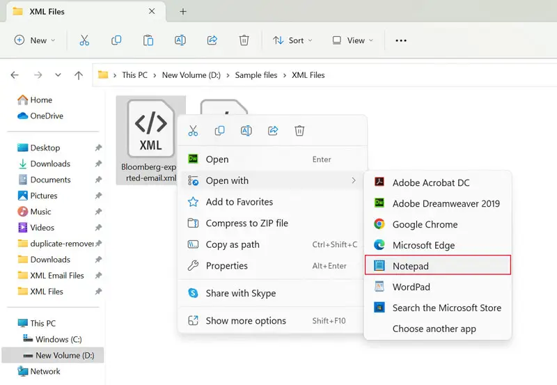 - Napsauta hiiren kakkospainikkeellaXML -tiedostosi ja valitse AvaaMuistilappu.