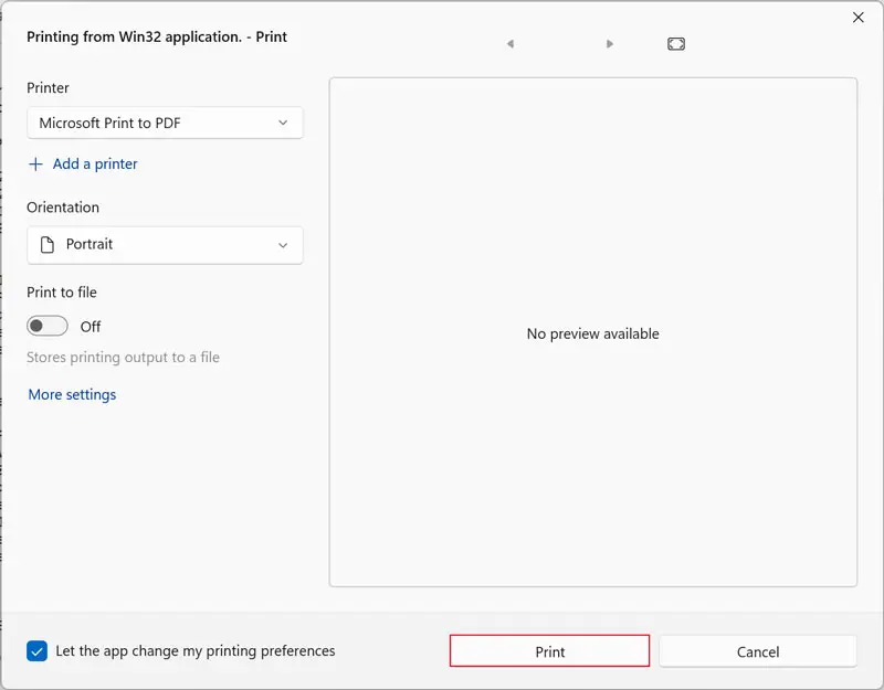 - ValitaMicrosoft Print PDF: lleVaihtoehto tulostimena.