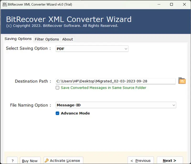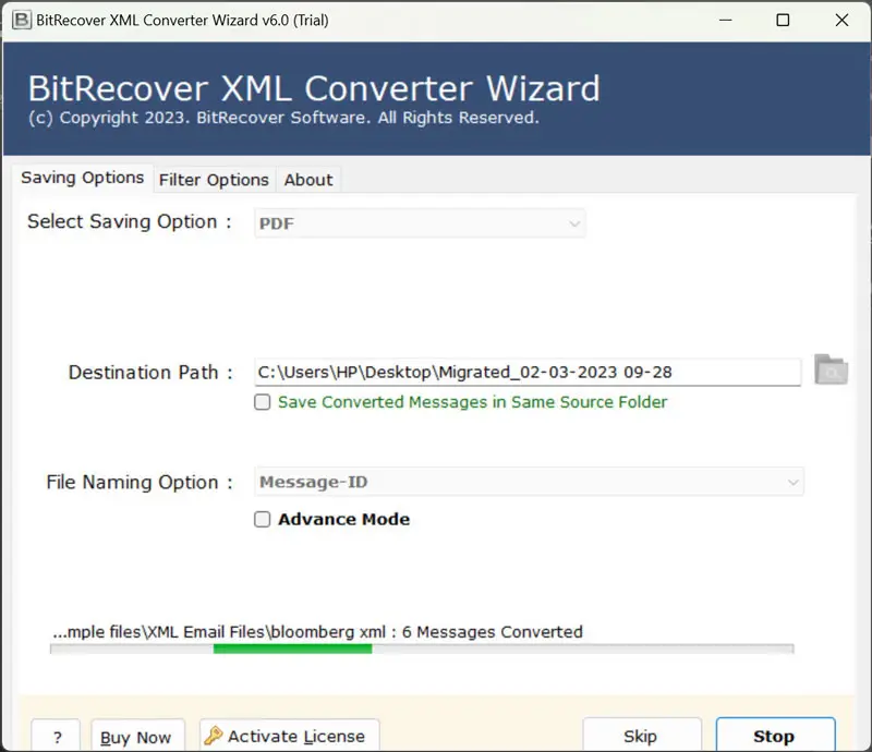 V:BitRecover XML - PDF -muunnin on hieno ja 100% turvallinen työkalu muuntamiseen.