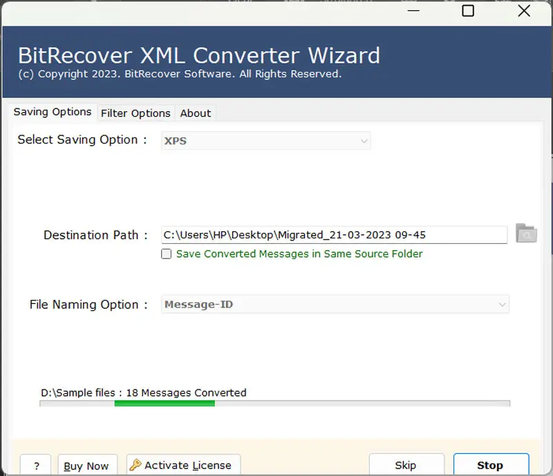 Olemme selittäneet täydelliset vaiheet XML-tiedostoiksi XPS-tiedostoiksi ja käyttäneet reaaliaikaisia kuvakaappauksia, jotta ymmärrät helposti koko prosessin. Lataa vain XML XPS -muunnin Windows -koneellasi ja asenna se. Tämä Freeware -versio mahdollistaa 25 XML -sivun viennin XPS -muotoon, jotta kuka tahansa voi helposti testata työprosessia. Saatuaan täydellisen tyytyväisyyden, päivittää se ammatilliseen versioon ja vältä rajoituksia lisenssivarianttien mukaan.