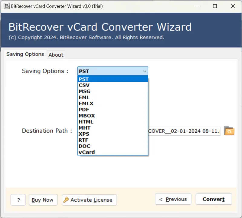 Tämä työkalu tarjoaa kaksi versiota – kokeiluversion ja lisensoidun version. Kokeiluversiossa käyttäjät voivat helposti muuntaa 25 yhteystietoa kustakin kansiosta. Rajoittamatonta yhteystietojen siirtoa varten käyttäjät voivat ostaa myös lisensoituja avaimia.
