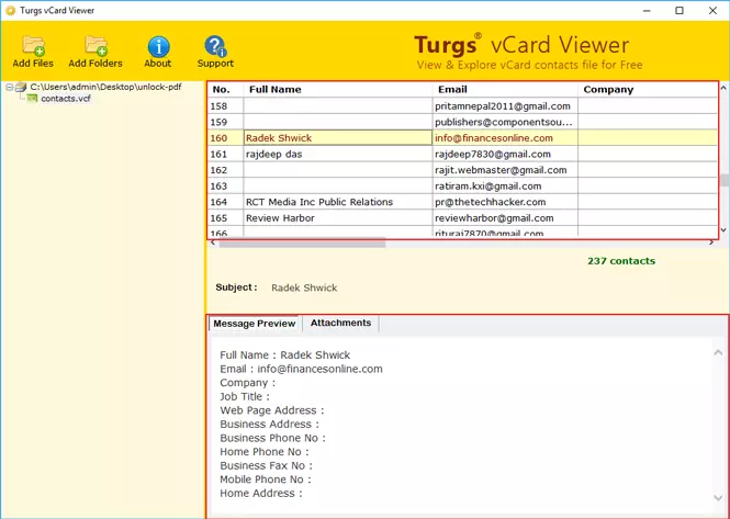 Huomautus:Tämän tehtävän suorittamiseen mainitun työkalun lisäksi voit käyttää myösvCard Viewer -sovellustarkastellaksesi VCF-tiedostojasi ja vCard Converter -sovellusta muuntaaksesi vCard-tiedostot toiseen muotoon. Molemmat sovellukset ovat yksinkertaisia, ja niitä voivat käyttää helposti sekä tekniset että ei-tekniset käyttäjät.