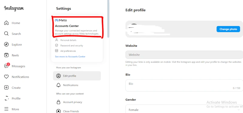 - Ensinnäkin, avoinInstagram>Mennä jhkAsetukset>sittenTilikeskus.