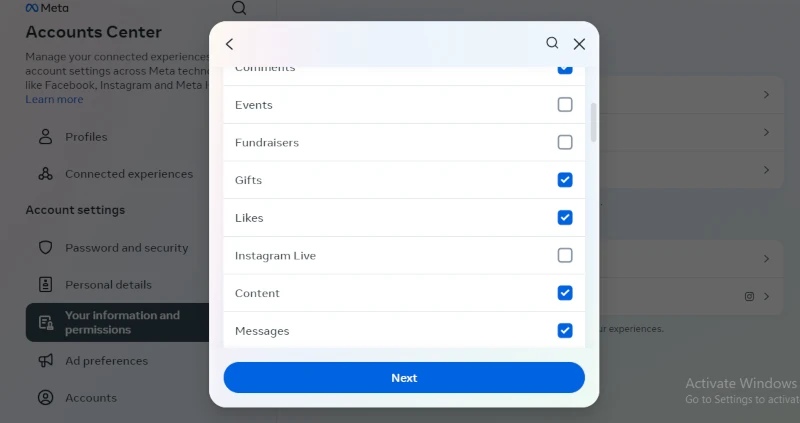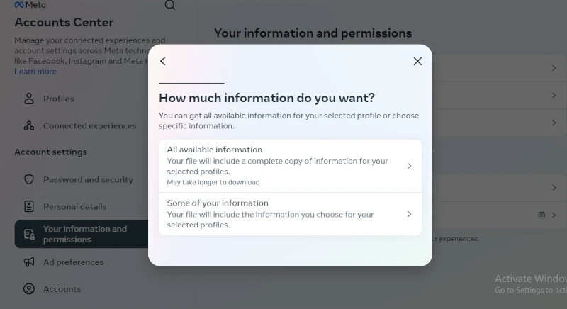 Itse Instagram antaa käyttäjille mahdollisuuden tallentaa kaikki ja kaikki saatavilla olevat tiedot Instagramista, jonka he ovat jakaneet; Viestit, sisältö, tallennettu, tapahtumat, kommentit, tykkäävät, Instagram, live, säikeet, muut toiminnot, kassat, kommentit, varainkeräykset, lahjat, meta kipinä, ansaitseminen, raportit, tarinatarran vuorovaikutukset, henkilökohtaiset tiedot, kuten - digitaaliset lompakot, tiedot sinusta ja yhteyksistä, kirjautuneista tiedoista jne. Tehdä niin, että sinun on pyydettävä lataamista. Lataa Instagram -tiedot alla mainitut vaiheet: