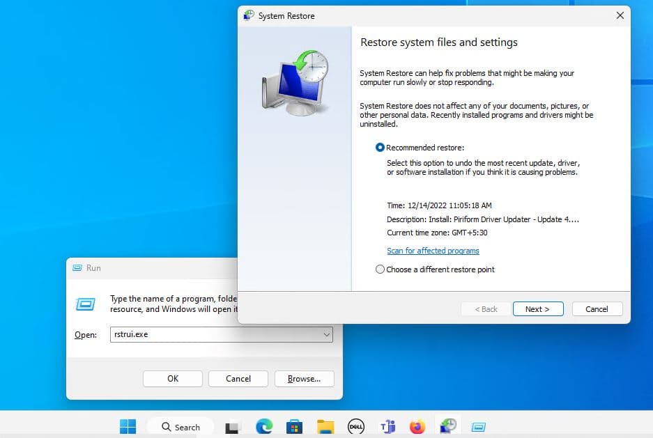Järjestelmän palauttaminen mahdollistaa järjestelmän palauttamisen aiempaan tilaan, jossa se toimi oikein. Jos saatVirheellinen kuva 0xc000012fVirhe, viimeisimmän muutoksen tai päivityksen jälkeen, järjestelmän palauttaminen voi kumota muutokset ja ratkaista ongelman.