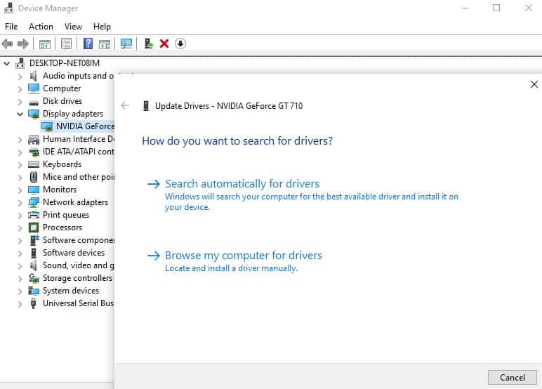 - Napsauta Etsi automaattisesti ohjaimia saadaksesi uusimman ohjainpäivityksen Internetistä tai Microsoft-palvelimelta. Tai voit käyttää toista vaihtoehtoa, jos sinulla on viimeisin ohjainpäivityksen lataus valmistajan sivustolta. Tämä vaihtoehto päivittää laiteohjaimen puolestasi.