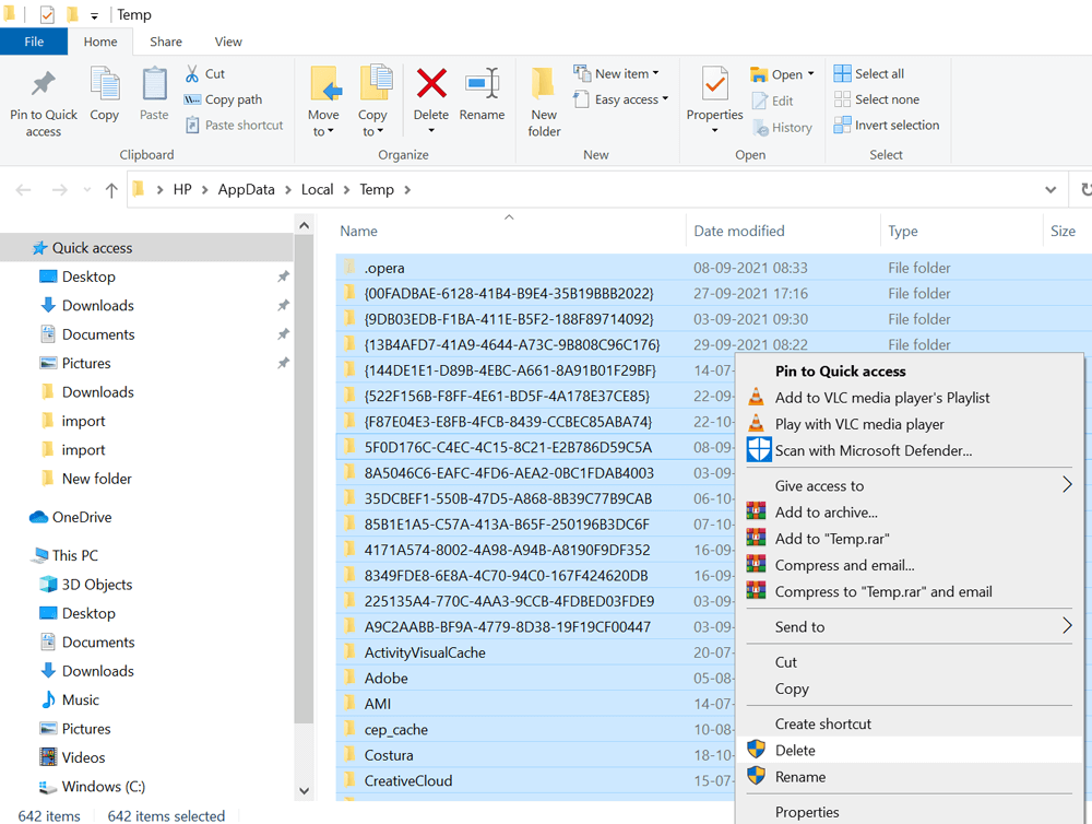 Sinun on poistettava väliaikaiset tiedostot tietokoneeltasi.