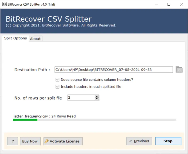 Jos sinulla on suuri CSV -tiedosto ja haluat tuoda sen Yahoo -yhteystietoihin, voit käyttääCSV Splitter -ohjelmistoKehittäjä BitRecover. Tämän työkalun avulla voit jakaa suuret tiedostot pienempiin tiedostoihin. Sen jälkeen voit tuoda tuloksena olevat CSV -tiedostot Yahoo Mailiin näyttämättä mitään varoitusviestiä.