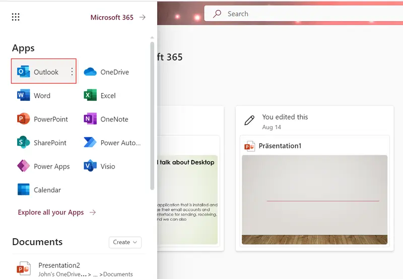 - Kirjaudu sisäänMicrosoft 365Tili ja valitseNäkymätsovelluksista.