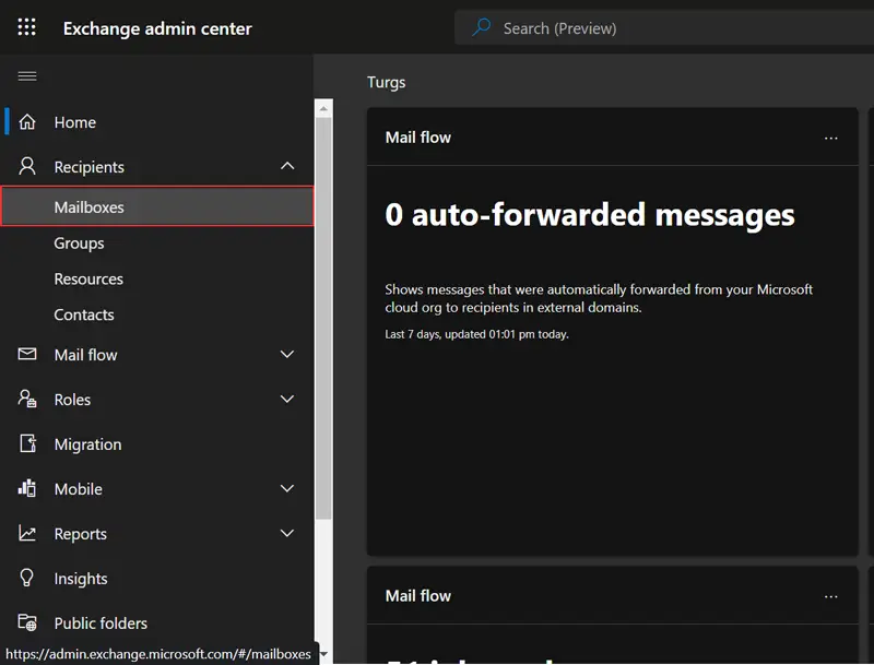 Sinun on noudatettava alla olevia vaiheita, jotta voit tarkistaa Office 365 -postilaatikon koko. Jos tämä on melkein täynnä, voit nostaa Office 365 -postilaatikon kokoa 100 Gt: iin seuraavassa tulevassa osiossa: