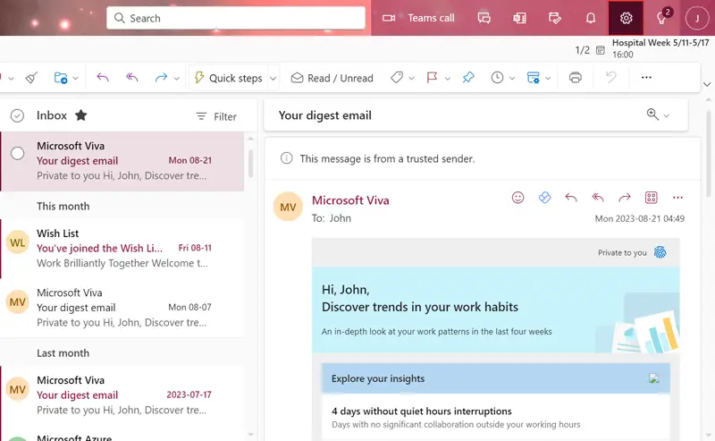 - Varoitushälytys:Office 365 -käyttäjät saavat varoitusviestin, kun postilaatikko on lähellä enimmäiskokoa. Tämän hälytysviestin lähettämisen motiivi on rohkaista käyttäjiä poistamaan pysyvästi ei -toivotut Office 365 -sähköpostit uusien sähköpostien vastaanottamiseksi.