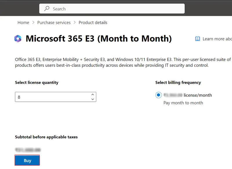 - Valitse lisenssin määrä, napsautaOstaaPainike ja suorita tapahtuma.
