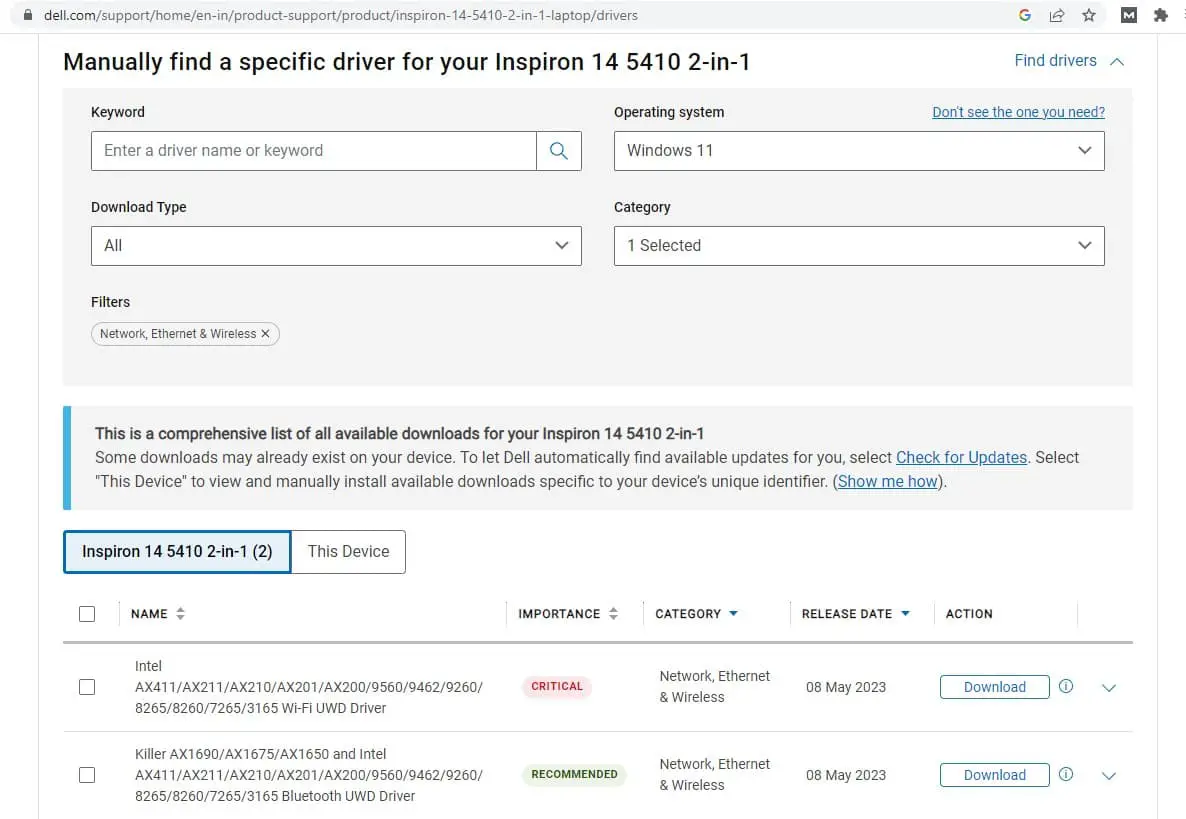 - Kirjoita nyt laitteesi malli ja hae, valitse seuraavaksi käyttöjärjestelmä Windows 11 ja lataa verkkosovittimesi ohjain.