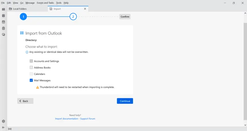 - Valitse tarvittavat kohteettuodaksesi OST-tiedostosta Thunderbirdiin.