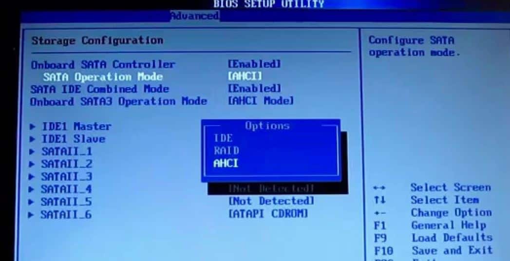 - EtsiSATA -tilavaihtoehto ja aseta seAhciIDE: n sijasta.