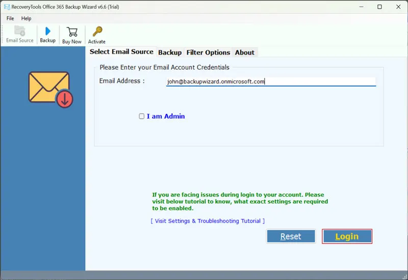 - Kirjoita Office 365 -sähköpostiosoite ja salasanat ja kirjaudu sitten järjestelmänvalvojana.