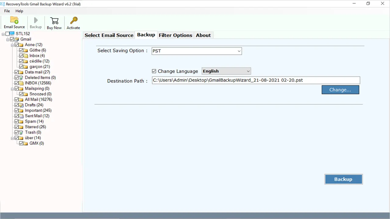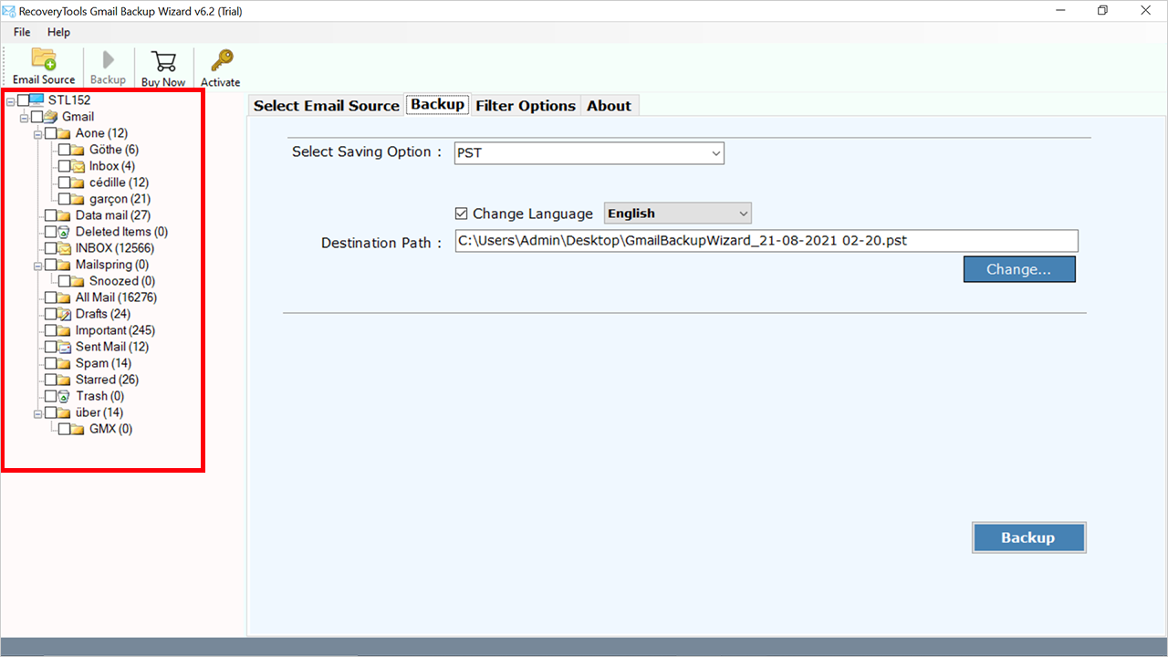Ensimmäinen askel alkaa lataamallaGmail -varmuuskopiotyökalu. Käynnistä se nyt oikein Windows -koneellasi ja siirry sen jälkeen eteenpäin seuraavilla vaiheilla.