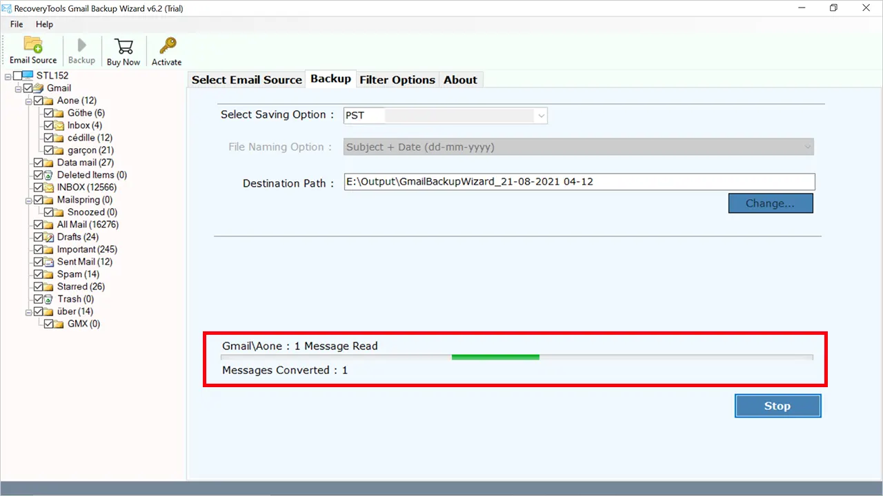 - Kolmanneksi, valitseTiedostomuotoUseista tallennusvaihtoehdoista saada useita vanhoja sähköposteja Google -tililtä.