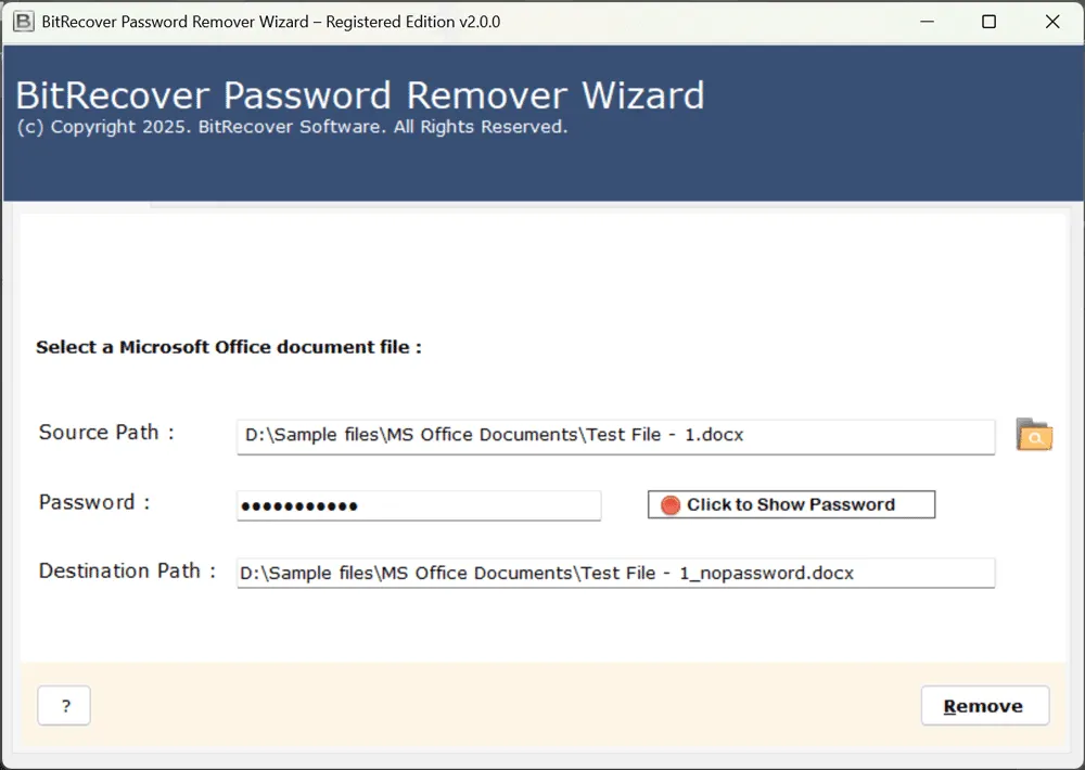 Jos et halua taistella manuaalisten vaiheiden kanssa tai sinulla on ppt -tiedostoja irtotavarana, paras ja helpoin vaihtoehto on käyttää ammattimainen työkalu, ts.BitRecover Office -salasananpoistoaine. Se on yksi suositeltavimmista ohjelmistoista PowerPoint -salasanan avaamiseksi heti ilman tietojen menetystä. Se tukee kaikkia Microsoft PowerPoint -versioita, jotta jokainen käyttäjä voi poistaa salasanan PPT: stä vain muutamalla yksinkertaisella napsautuksella. Tämä ohjelmisto tarjoaa sinulle vaivatonta kokemusta, vaikka haluat eristää useita esityksiä.