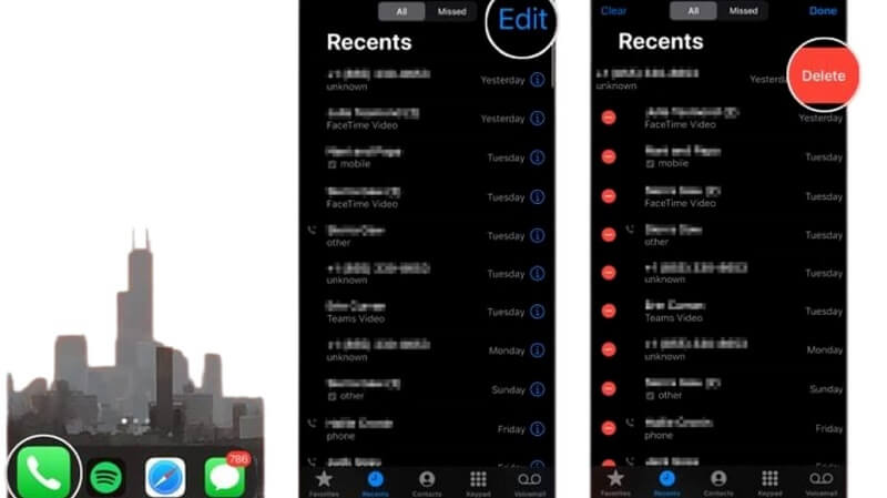 Vaihe 3:Napauta kunkin puhelinnumeron vieressä olevaa punaista ympyrää. Paina Poista.