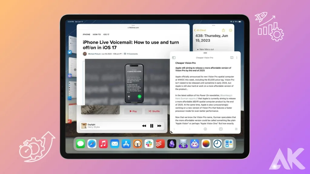 iPadOS 17.7:n Enhanced Multitasking -ominaisuudet vievät tuottavuuden aivan uudelle tasolle tarjoten käyttäjille joustavamman ja tehokkaamman tavan hallita tehtäviä liikkeellä ollessaan.Omenaon parantanut Split View- ja Slide Over -toimintoja, mikä tekee useiden sovellusten samanaikaisesta työskentelystä helpompaa kuin koskaan. Voit nyt vaihtaa saumattomasti sovellusten välillä tai jopa pitää useita ikkunoita auki kerralla Stage Managerin avulla, jolloin saat työpöydän kaltaisen kokemuksen iPadillasi.