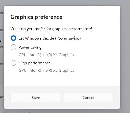 - Valitse virransäästövaihtoehto ja napsauta Tallenna.