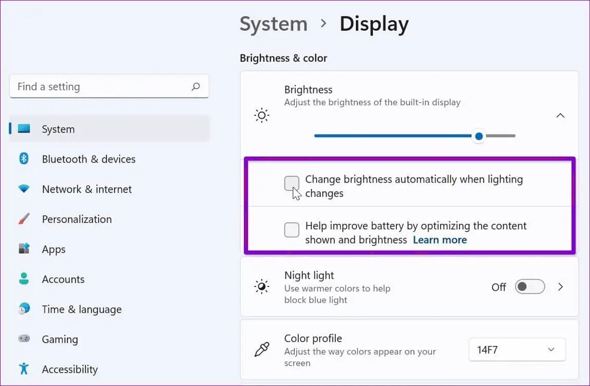 Vähennä kirkkautta painamalla Windows -näppäintä + A ja käytä liukusäädintä.