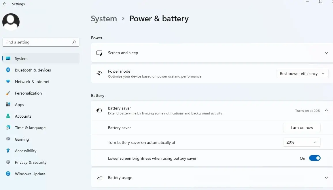 - Avaa Windows 11 -asetukset ja siirry Power & Battery