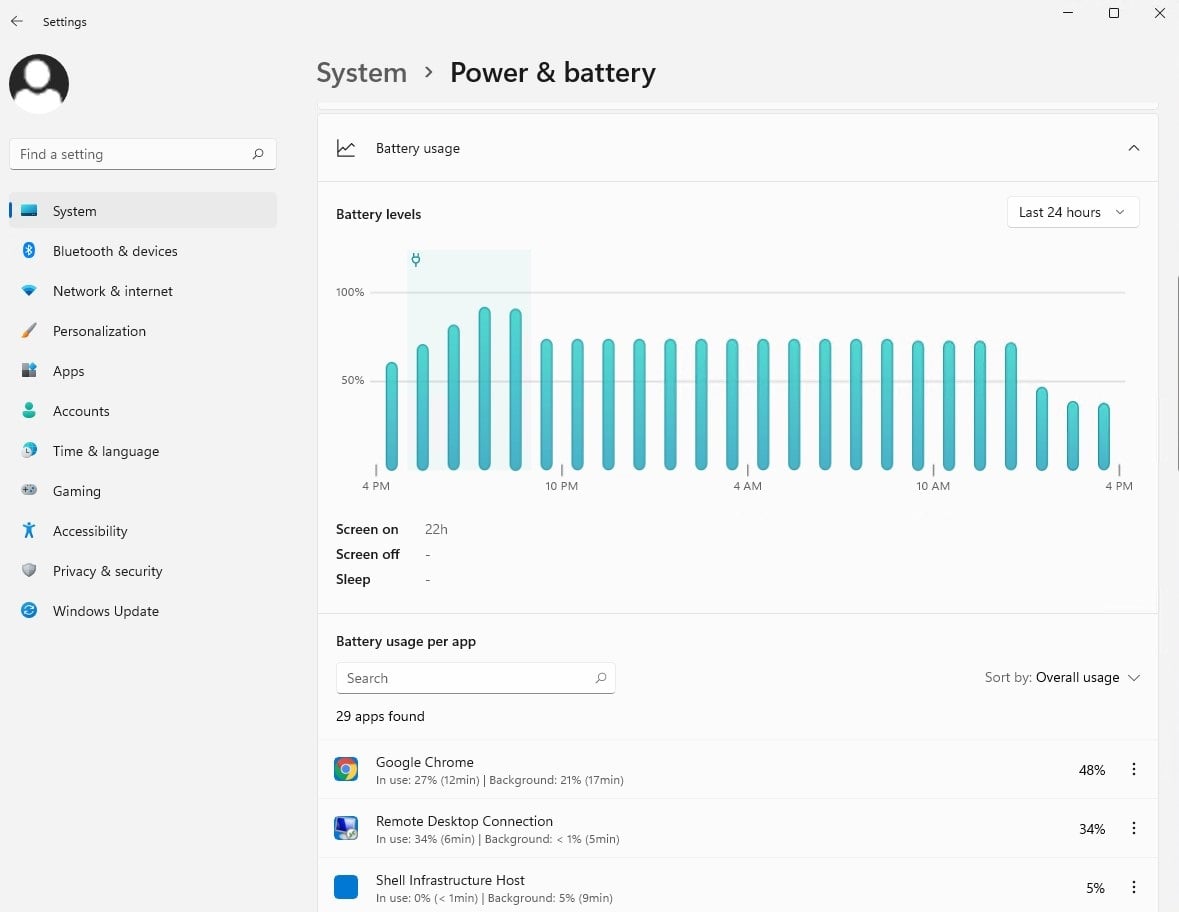Windows 11: n ilmaisen päivityksen jälkeen kannettavan tietokoneen akku näyttää tyhjentyvän paljon nopeammin verrattuna siihen, kun käytin Windows 10: tä.