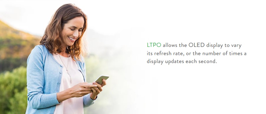 LTPO antaa OLED -näyttöä muuttaa virkistysnopeuttaan tai kuinka monta kertaa näyttö päivittää sekunnissa. Useimmat puhelimet käyttävät 60-Hertz (Hz) -virtaa, mutta yhä useammat tarjoavat erittäin sileät 120 Hz: n nopeudet, mukaan lukien S21-puhelimet. Tällä hetkellä Galaxy-kokoonpano tukee 120 Hz: n virkistysnopeuksia, jotka luovat erittäin sileää grafiikkaa, mutta voivat vähentää merkittävästi akun käyttöikää. LTPO mahdollistaa mukautuvat virkistysnopeudet, joissa puhelin voi mittakaavan virkistysnopeudensa 120 Hz: stä 1 Hz: iin akun säästämiseksi tarvittaessa.